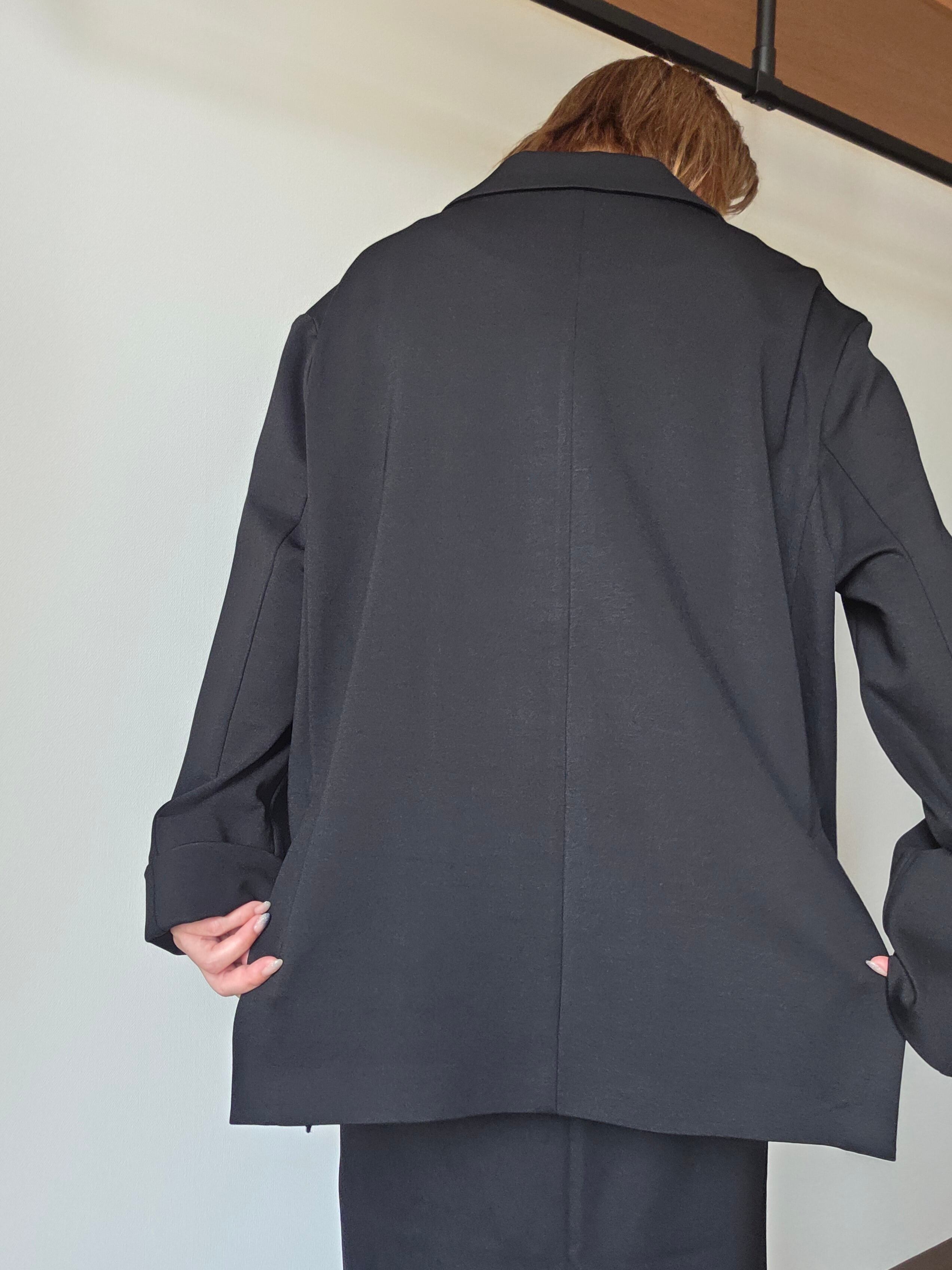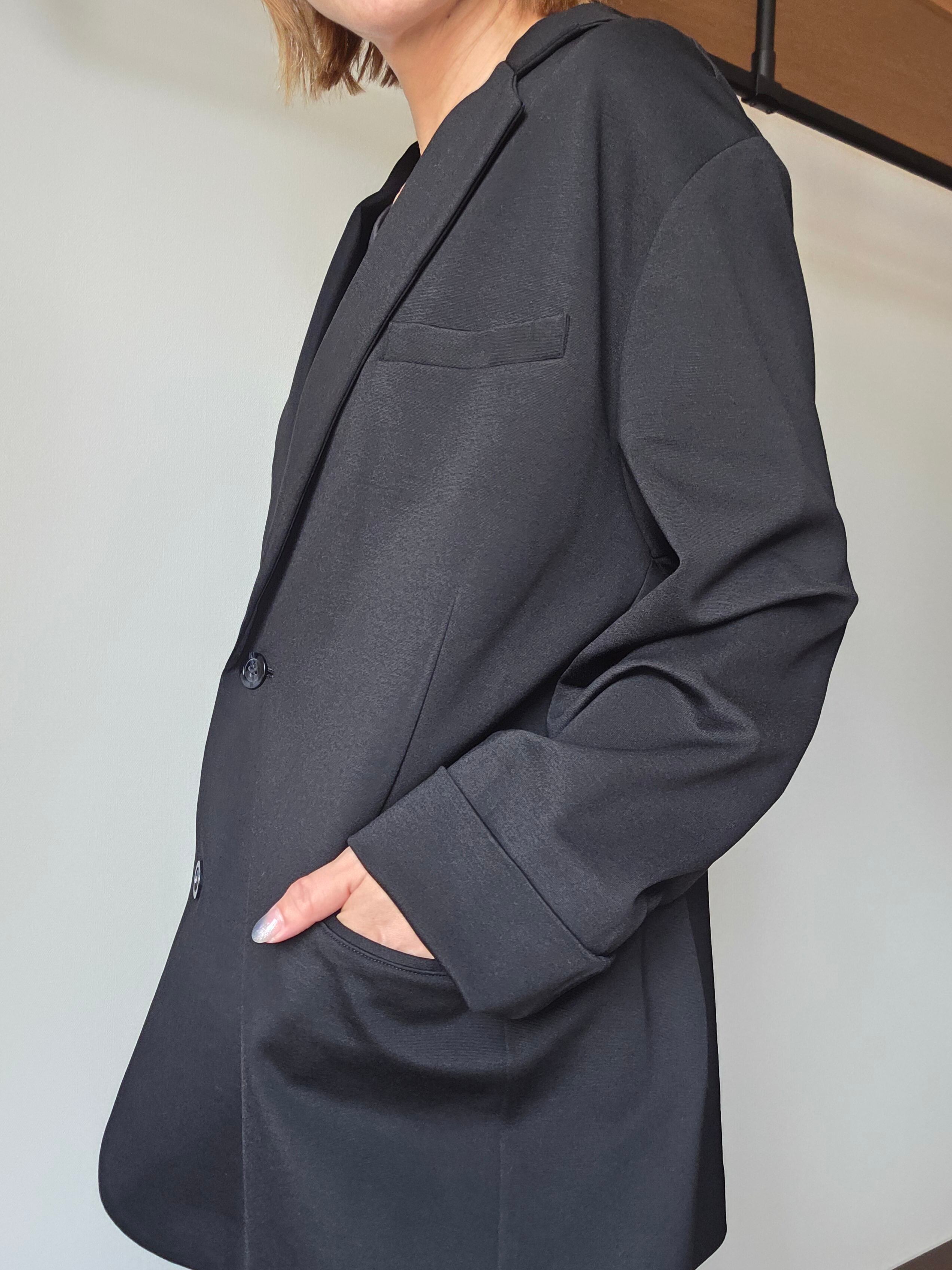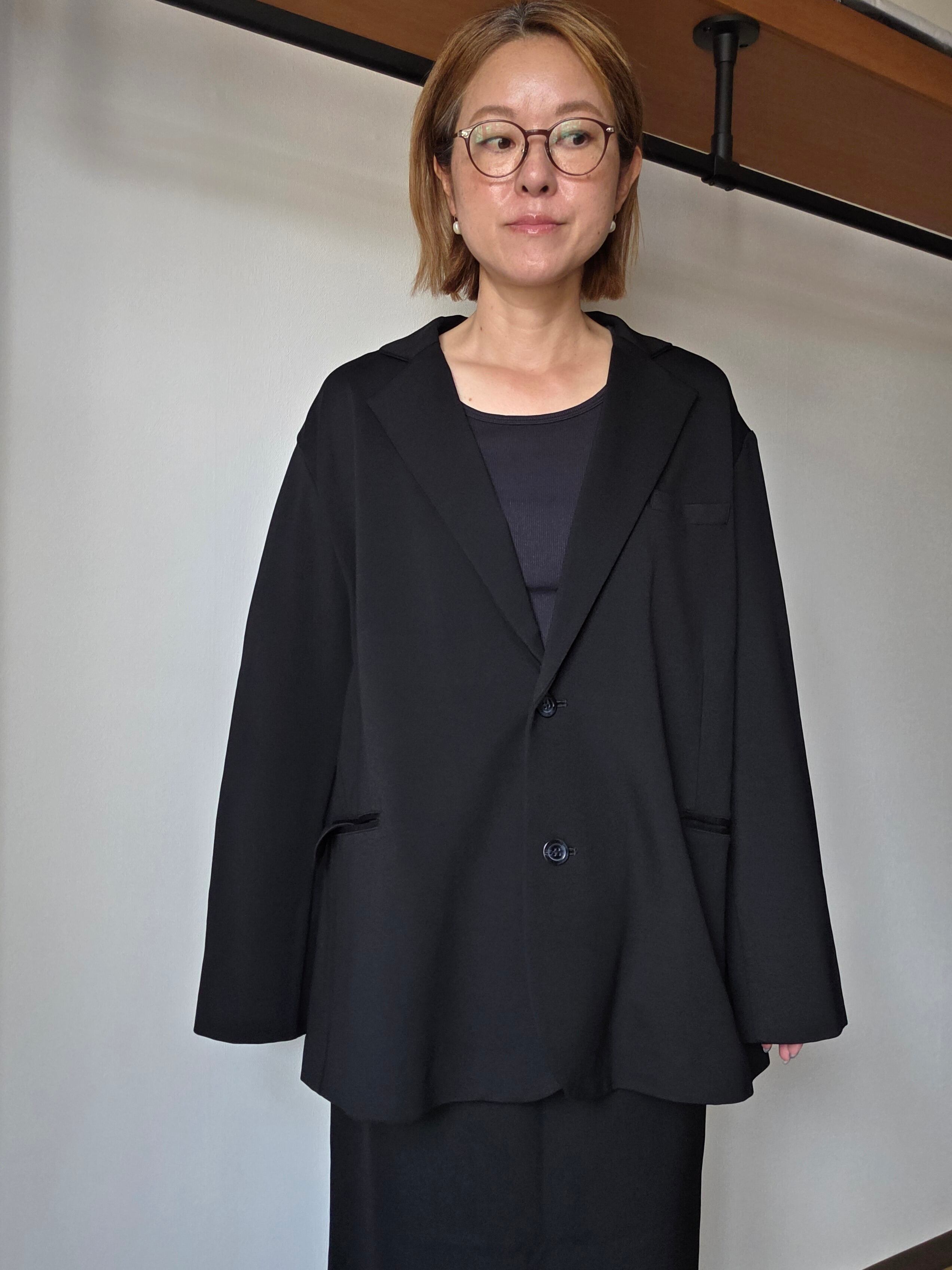 カジュアルなストレッチ素材のジャケット。ウエストをややシェイプさせたオーバーサイズシルエット。 1 枚仕立てのラフな雰囲気でデイリーに着用することができます。同素材のパンツやスカートとのセットアップでの着用もおすすめです。