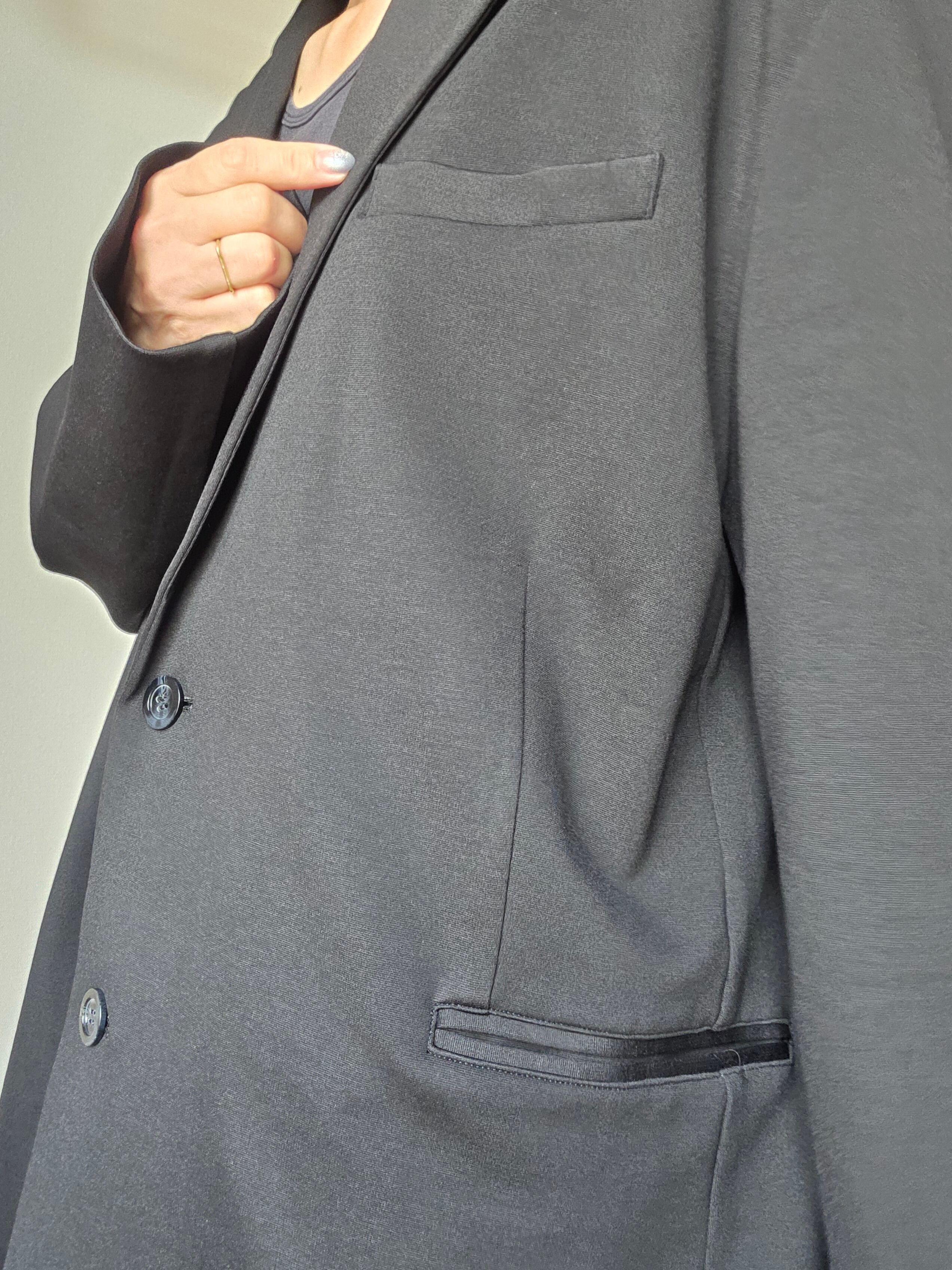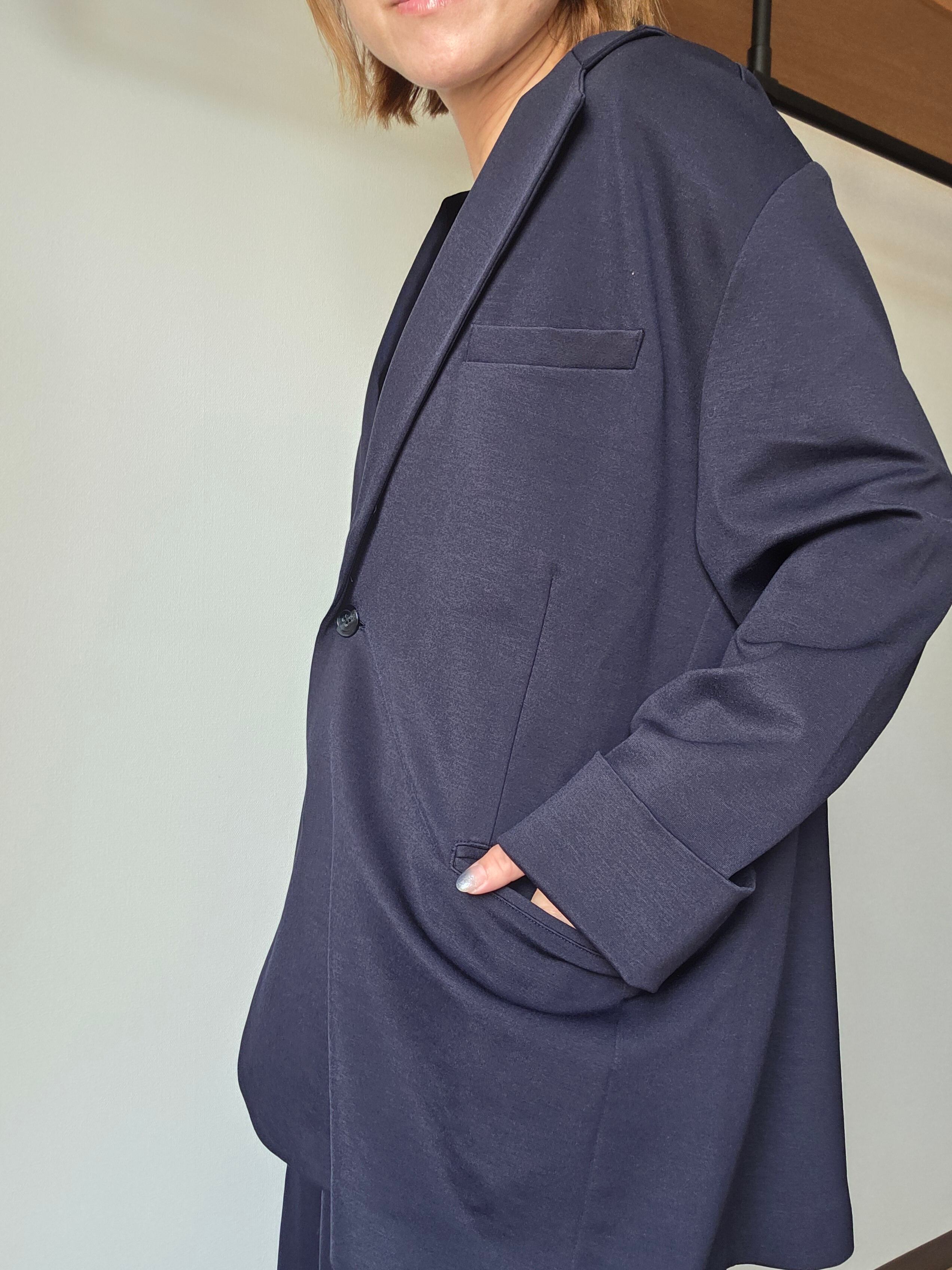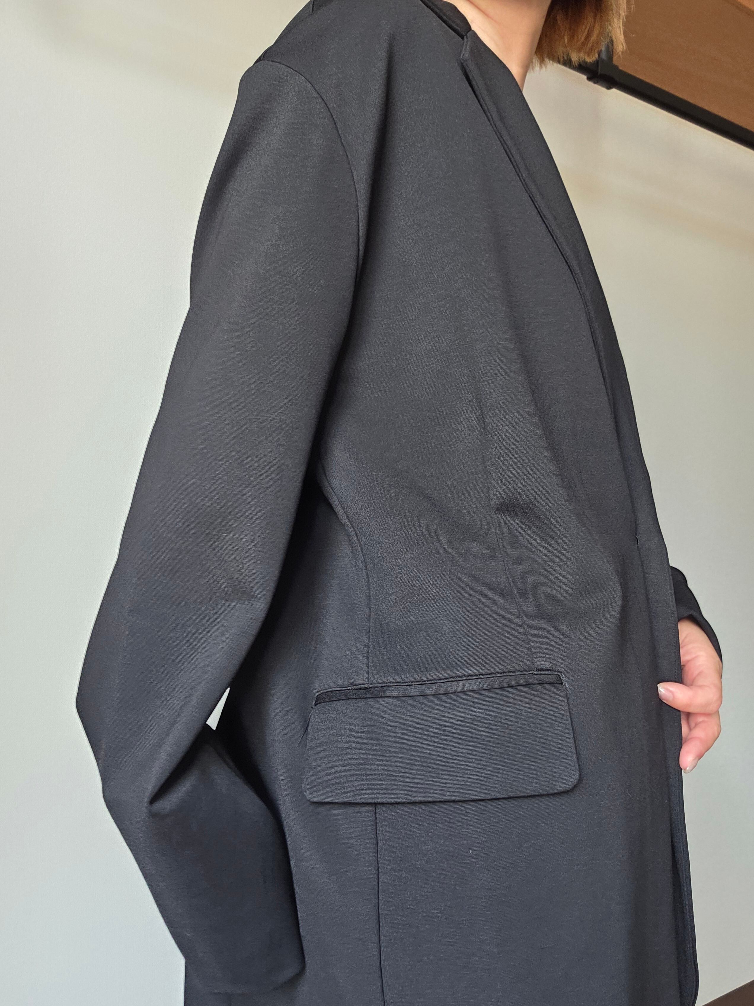 カジュアルなストレッチ素材のジャケット。ウエストをややシェイプさせたオーバーサイズシルエット。 1 枚仕立てのラフな雰囲気でデイリーに着用することができます。同素材のパンツやスカートとのセットアップでの着用もおすすめです。