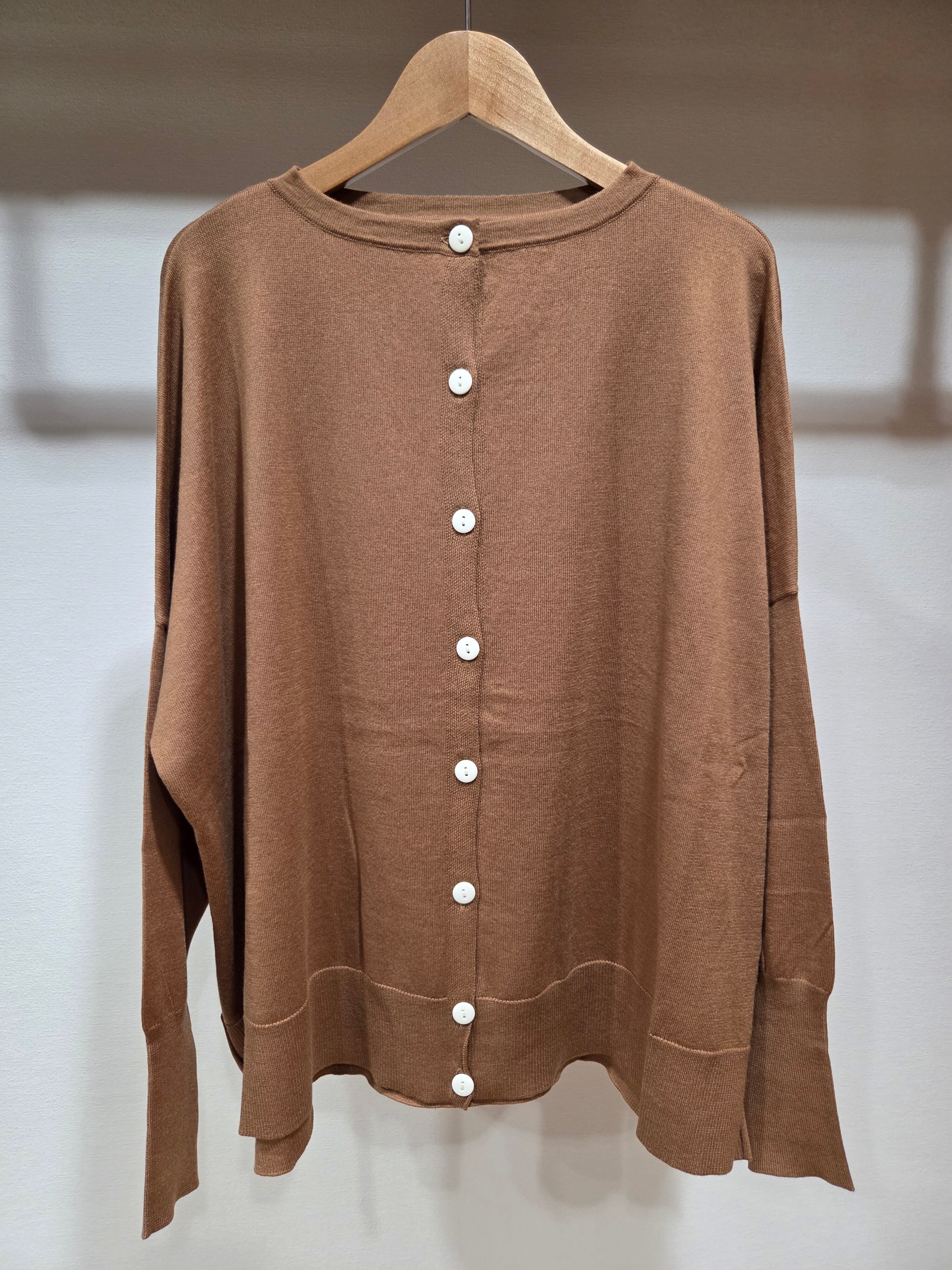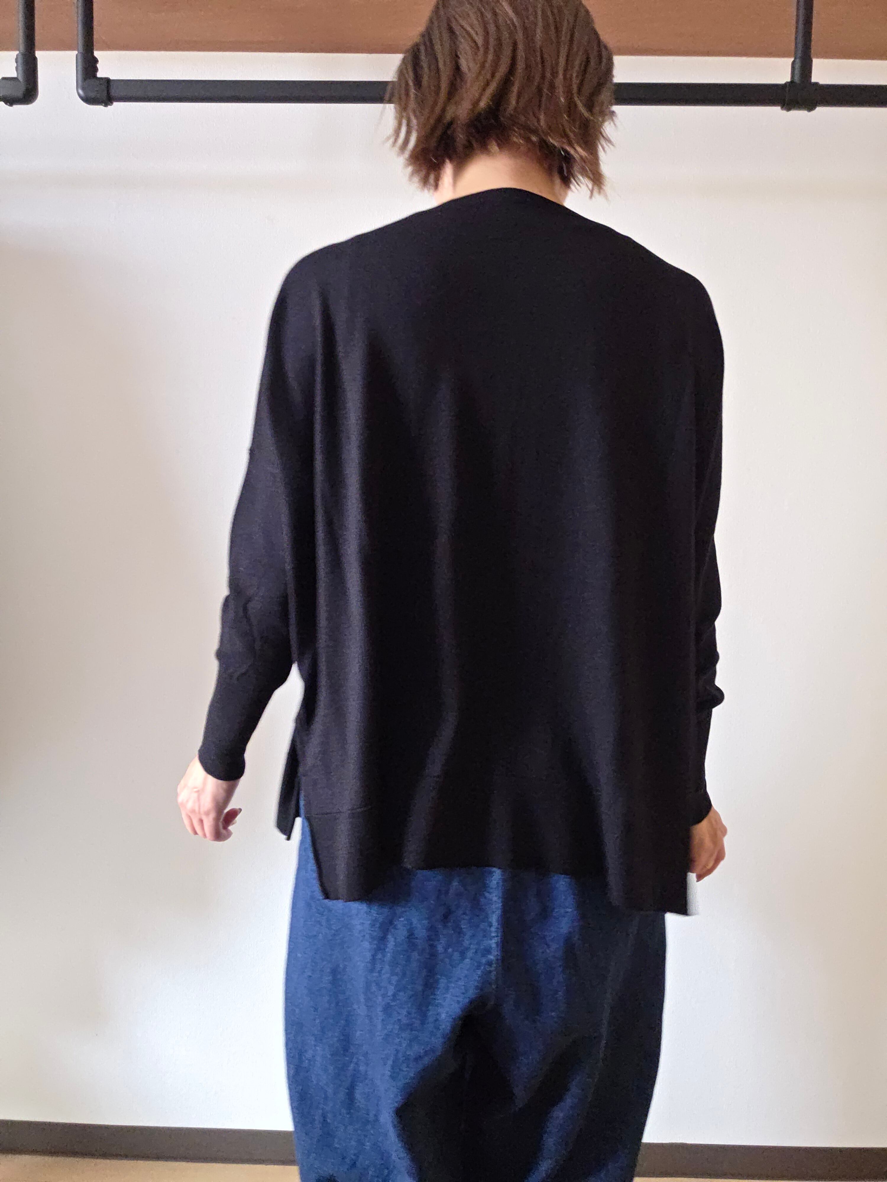 Veritecoeurのitemの中でも、多くの方にご愛用頂いている2WAYカーディガンです。身幅がワイドな作りで、リラックスした着心地です。2WAYでの着用が可能で、前後どちらを前にしても着て頂けます。様々なitemとも相性が良く、着回しの効くカーディガンです。