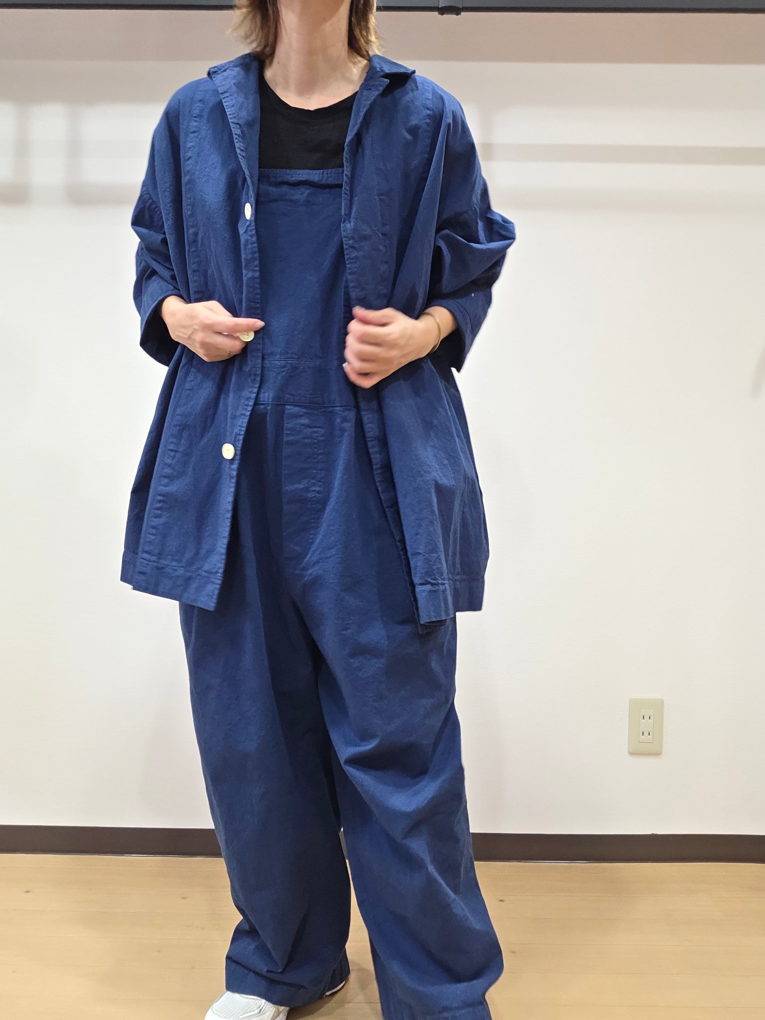 衿元は小ぶりなテーラードカラーで、ボタンを閉めて衿を立てての着用も可能です。サイドポケット付き。