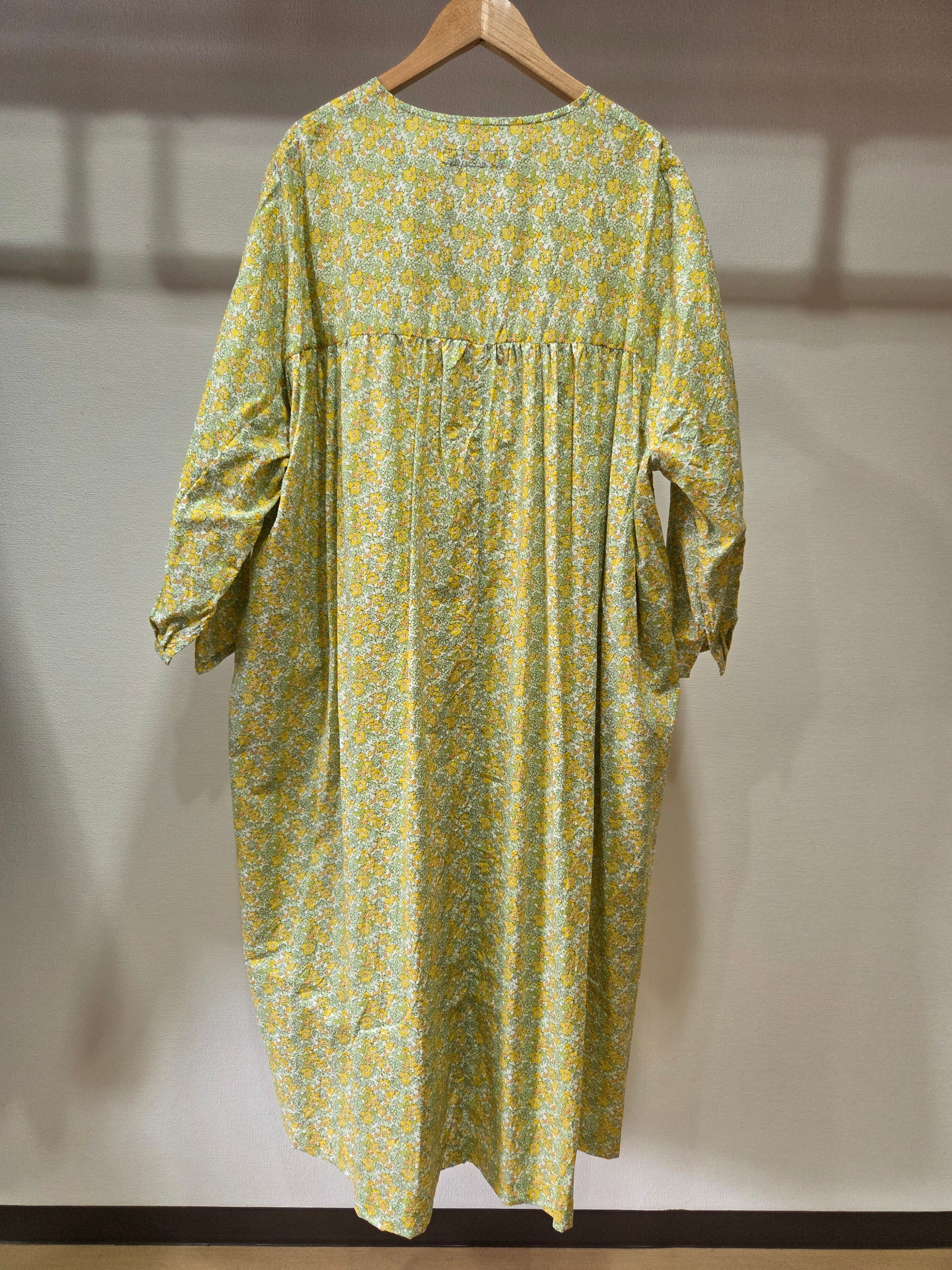 前身頃はすっきりとしたシャツスリーブ、後ろがギャザーの入ったヨークスリーブになっており、前後で異なる印象がたのしめます。