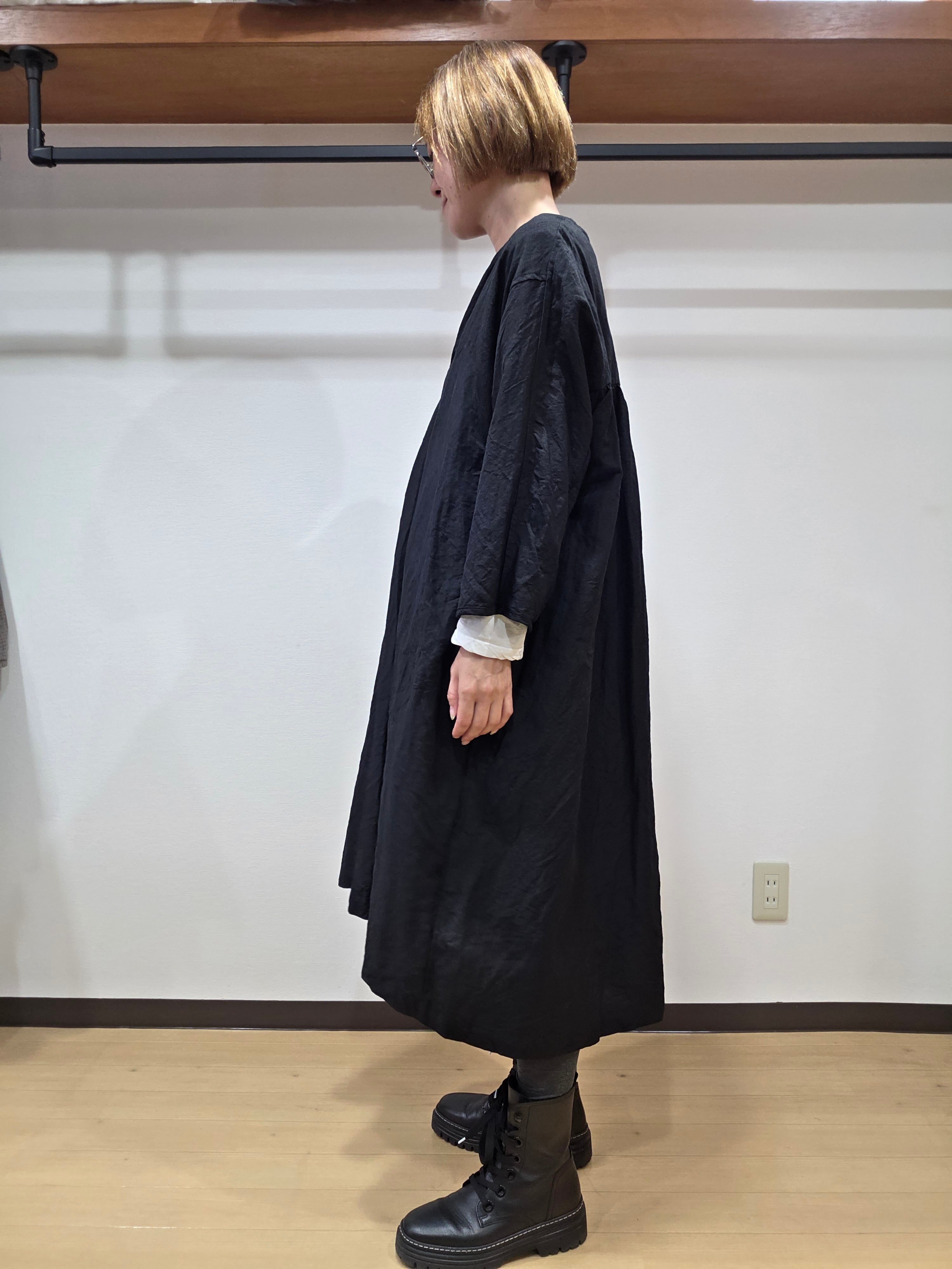 スキッパー仕様の前開きでリラックスした雰囲気のワンピース。